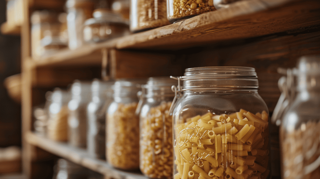 To keep your favorite spaghetti noodles and macaroni in tip-top shape for decades, seal them tight in Mylar bags with oxygen absorbers before stashing them away in cool, dark places like your pantry or cellar inside sturdy 5-gallon buckets.