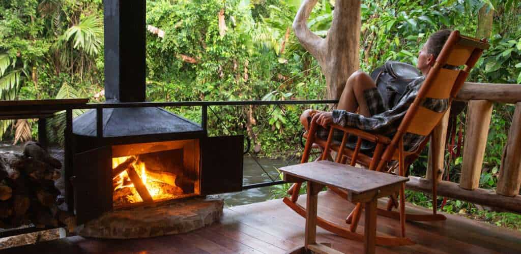 Here, you’ll feast on farm-to-table meals prepared over a wood-burning stove and fall asleep to the sound of rushing river waters—a true testament to sustainable luxury blending seamlessly with rustic charm.