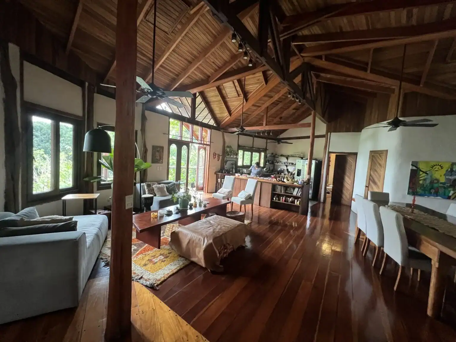 Casa Brisa is a handcrafted home in La Ecovilla, near San Mateo, Costa Rica. Built with fallen wood, clay, and bamboo, it offers a warm, nature-connected stay with a more personal and character-filled atmosphere than a standard rental. It is especially well suited to guests looking for a spacious home with strong design personality, cooler natural interiors, and beautiful views.
