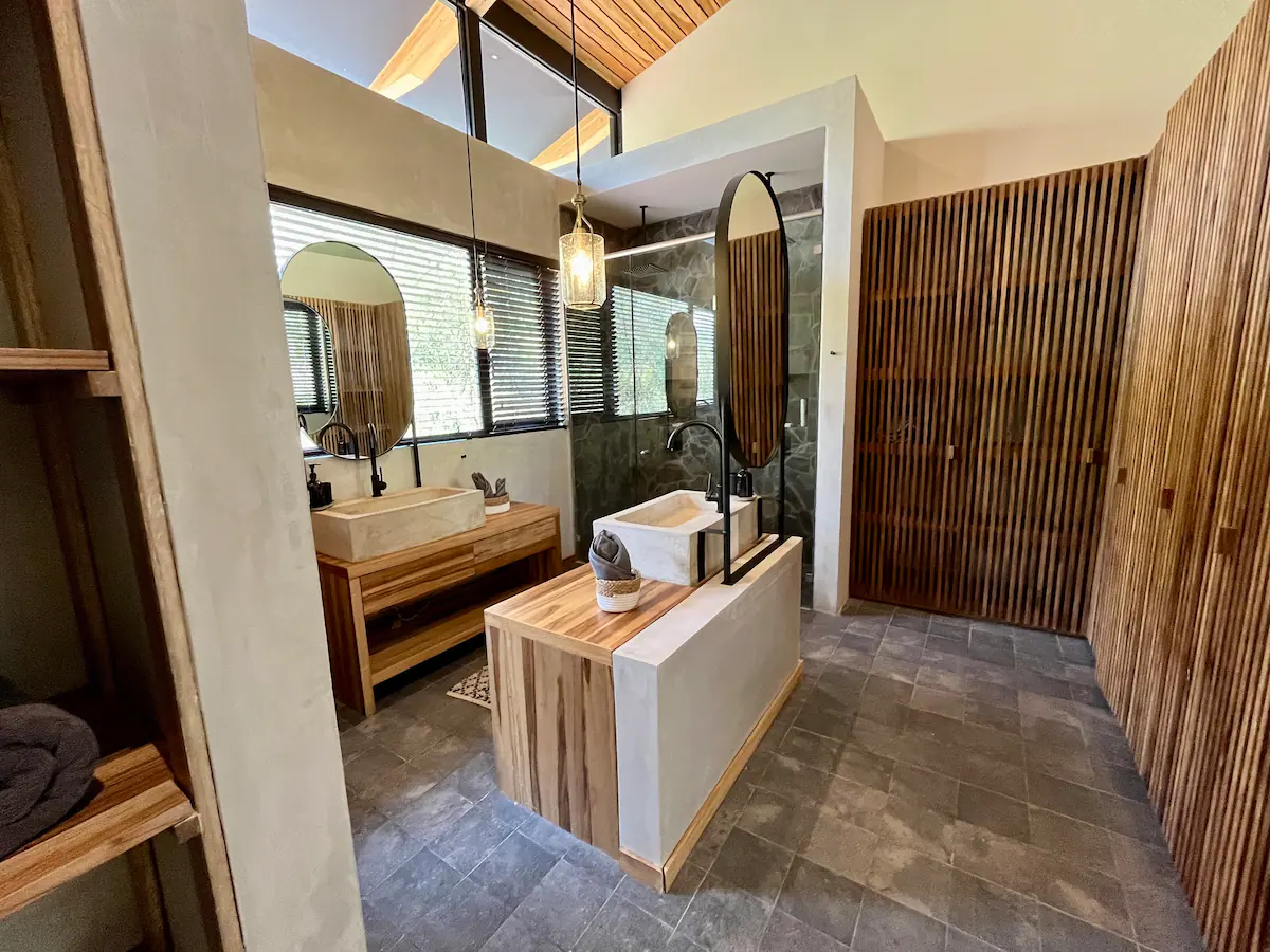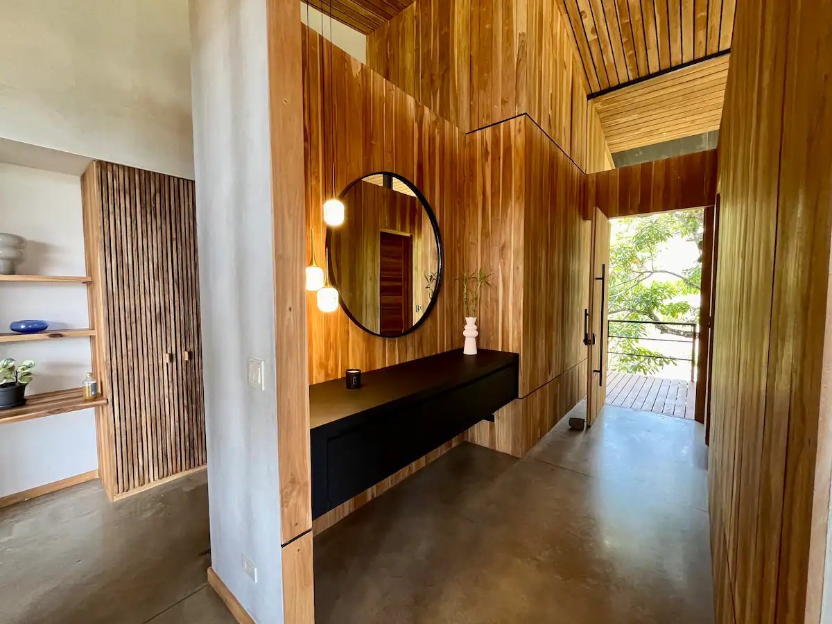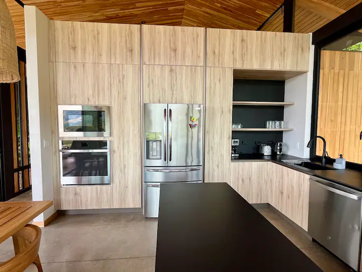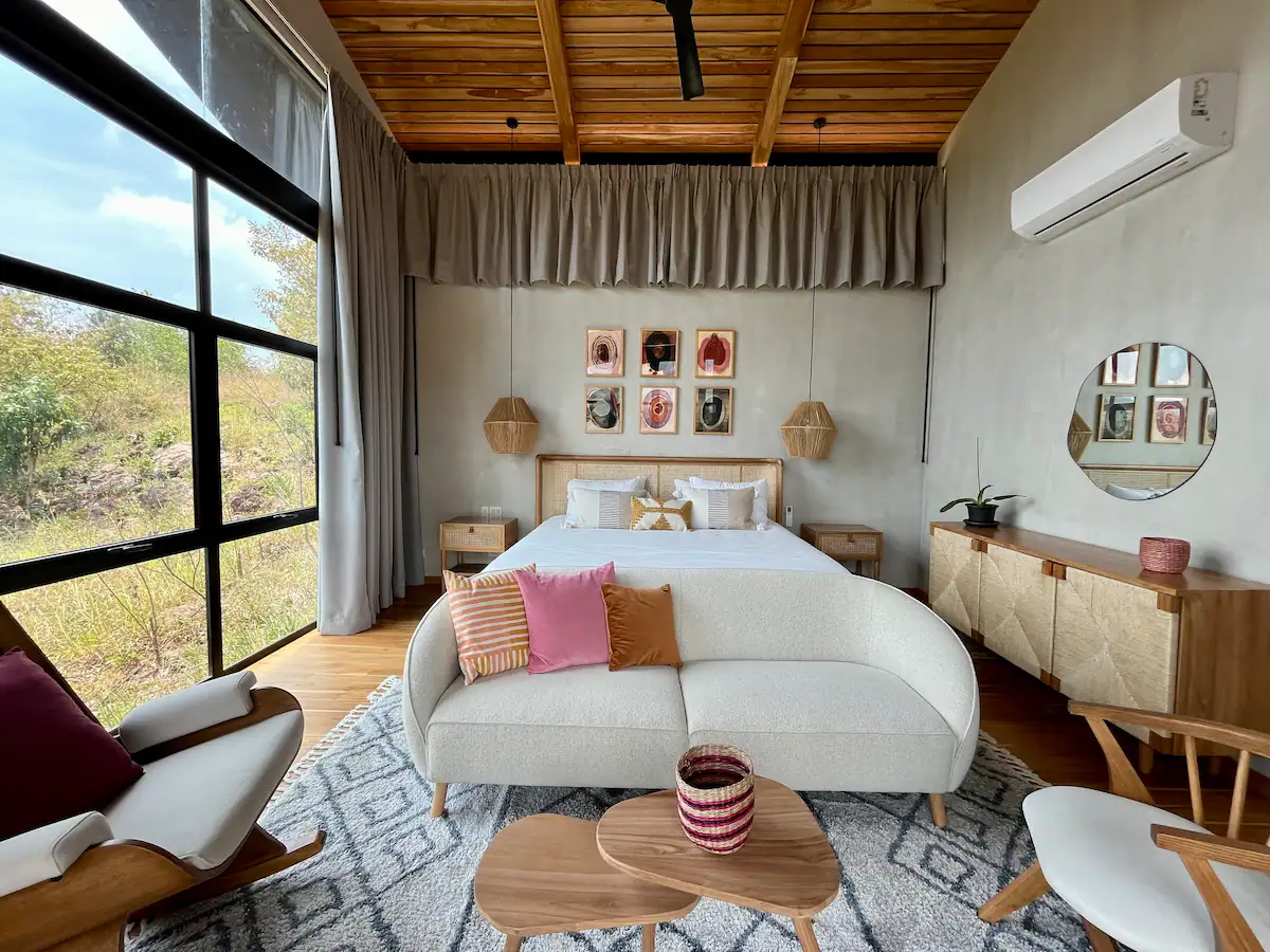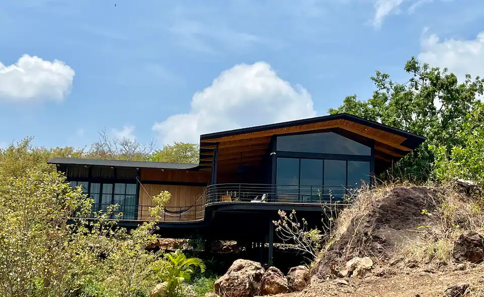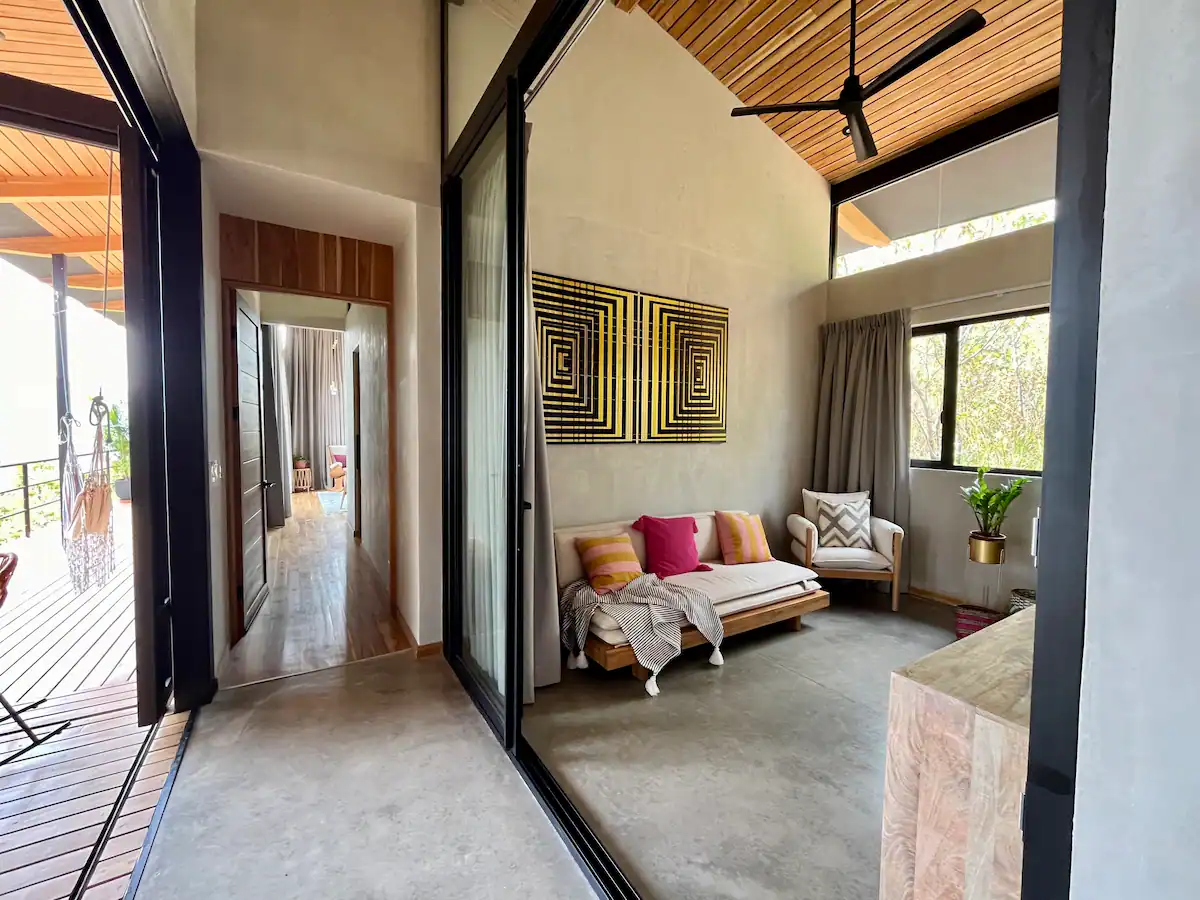 The home is designed for slowing down and leaning into nature, with wide-open views from the main living area and a professional kitchen for comfortable longer stays. As part of Alegría Village, it also comes with access to shared amenities like a chlorine-free heated lap pool, yoga/movement space, and high-speed fibre internet.