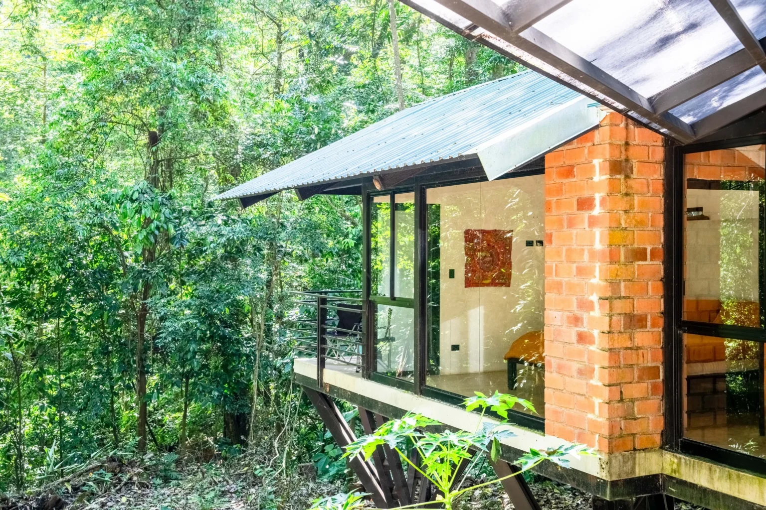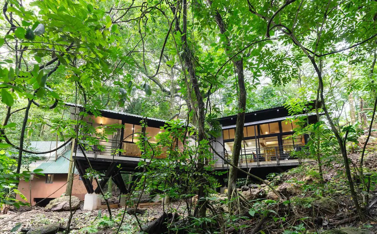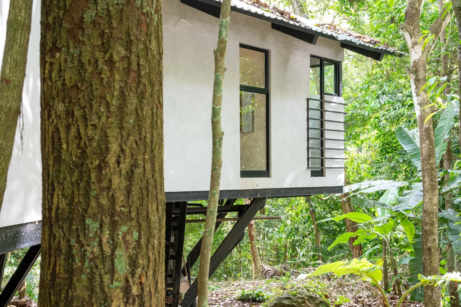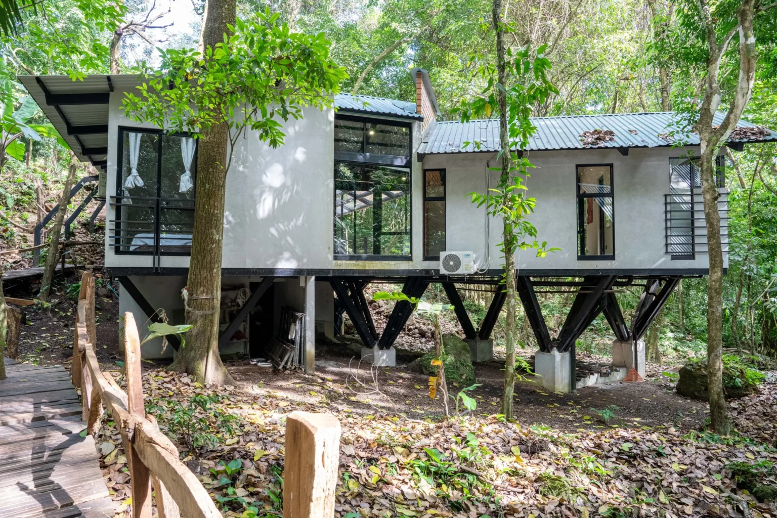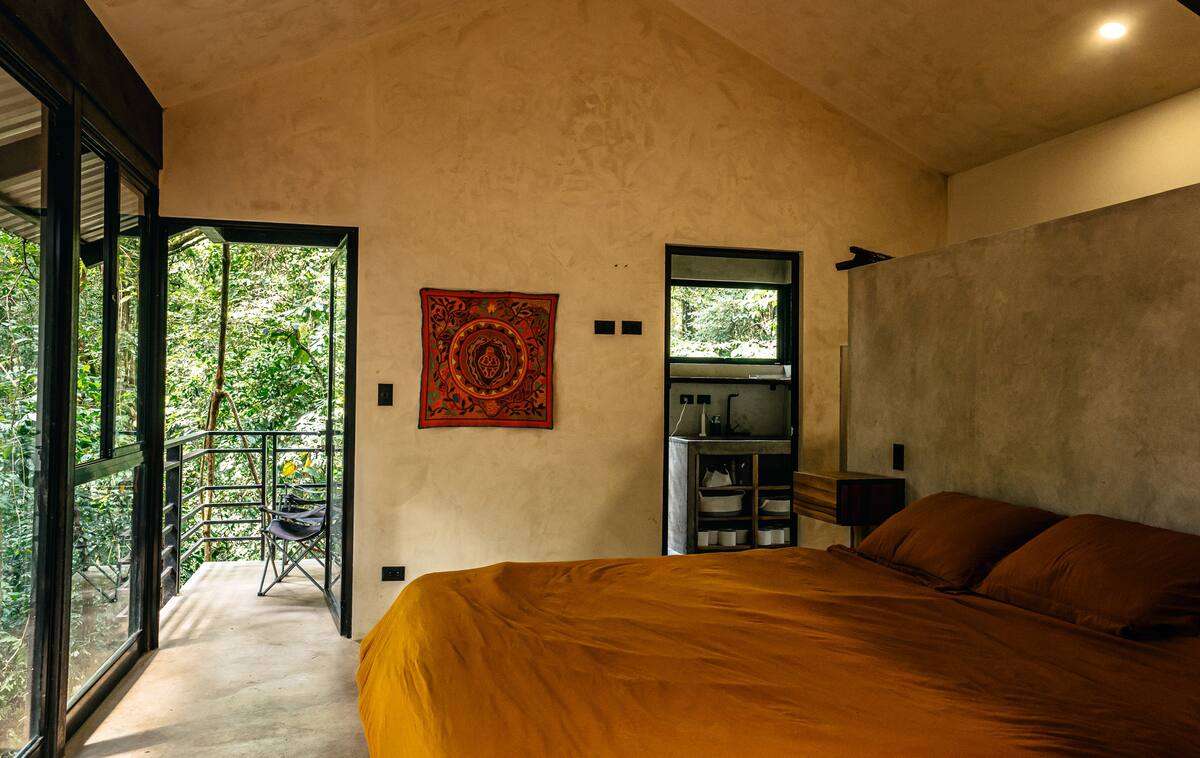 This home is a great home base for experiencing life in Alegría Village, a community focused on simple, sustainable living. It’s a functional space with an indoor-outdoor layout that keeps you connected to the environment. Whether you’re here to rest or to use the community’s walking trails and creeks, it provides a calm and honest jungle experience.
