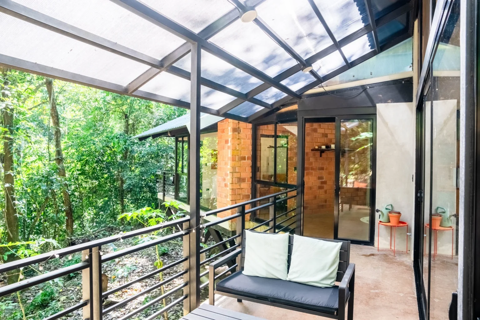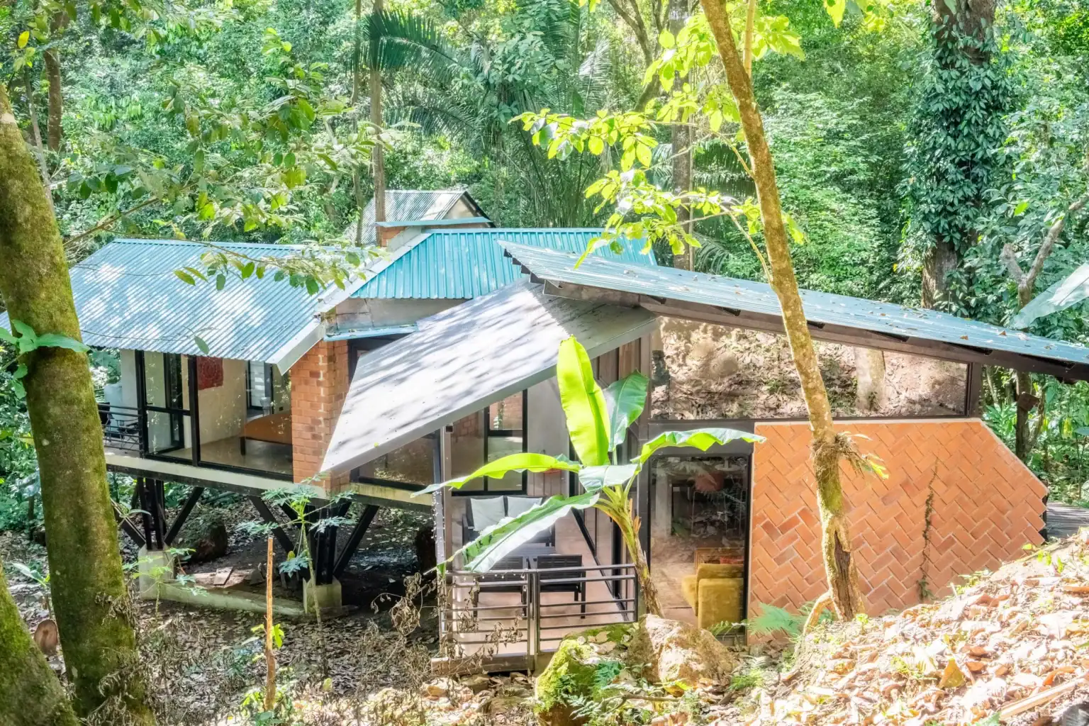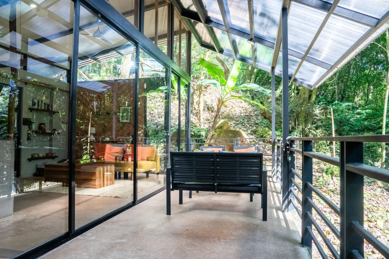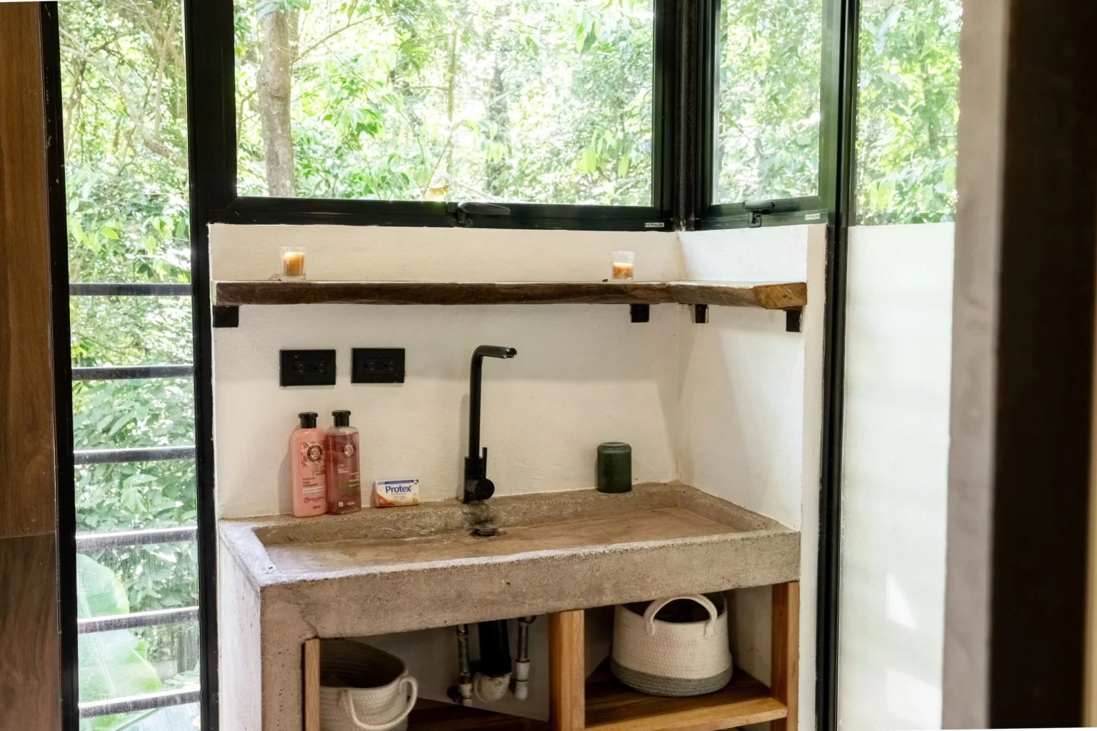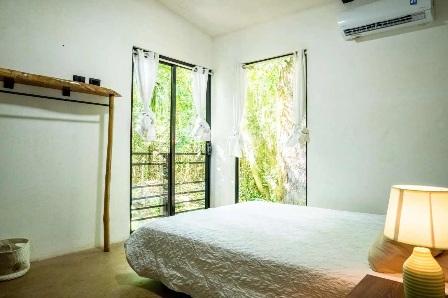 This home is a great home base for experiencing life in Alegría Village, a community focused on simple, sustainable living. It’s a functional space with an indoor-outdoor layout that keeps you connected to the environment. Whether you’re here to rest or to use the community’s walking trails and creeks, it provides a calm and honest jungle experience.