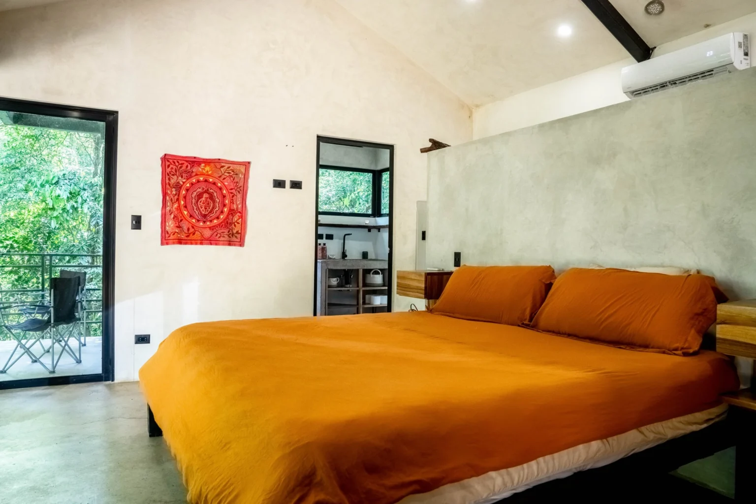 Casa La Raíz is a practical and comfortable 2-bedroom, 2-bathroom home located within the Alegría Village eco-community in San Mateo, Costa Rica. It offers a straightforward, quiet stay for those who want to be close to nature without unnecessary frills. The house is designed to be open and airy, letting in plenty of natural light and the sounds of the surrounding jungle.