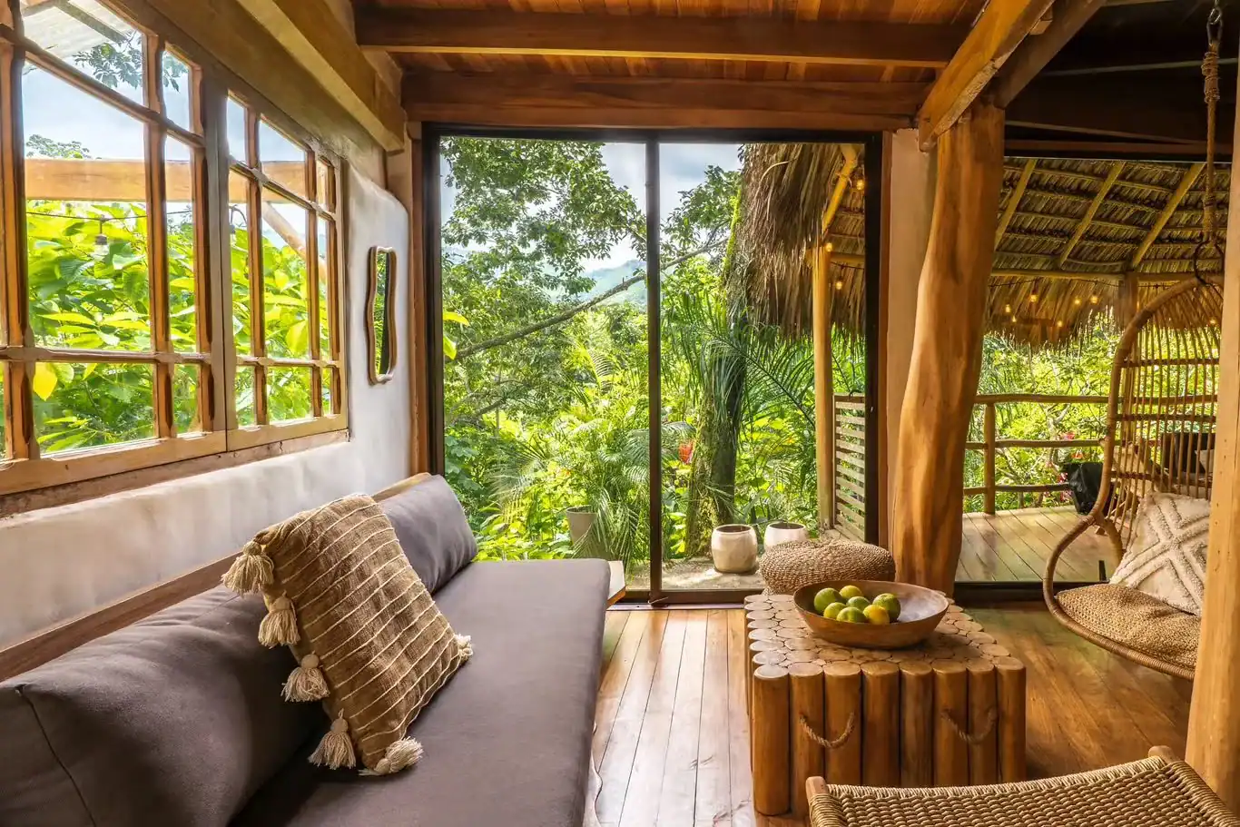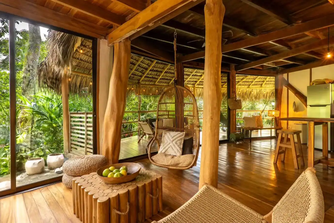 One of Casa Monita’s standout qualities is its setting within an edible landscape of tropical plants and fruit trees, including banana, pineapple, avocado, lemon, and jackfruit. Guests can also enjoy the wider La Ecovilla experience, including community events and wellness activities, the infinity pool, and the weekly farmers market held at the sister property in Ecovilla San Mateo. Guests staying over a Saturday also receive a weekly basket of produce from the community’s permaculture garden.