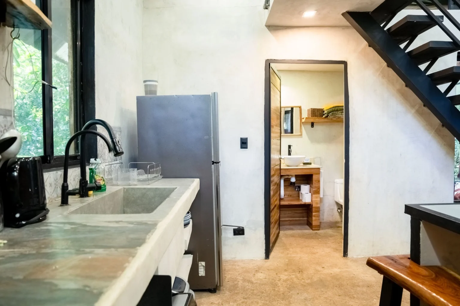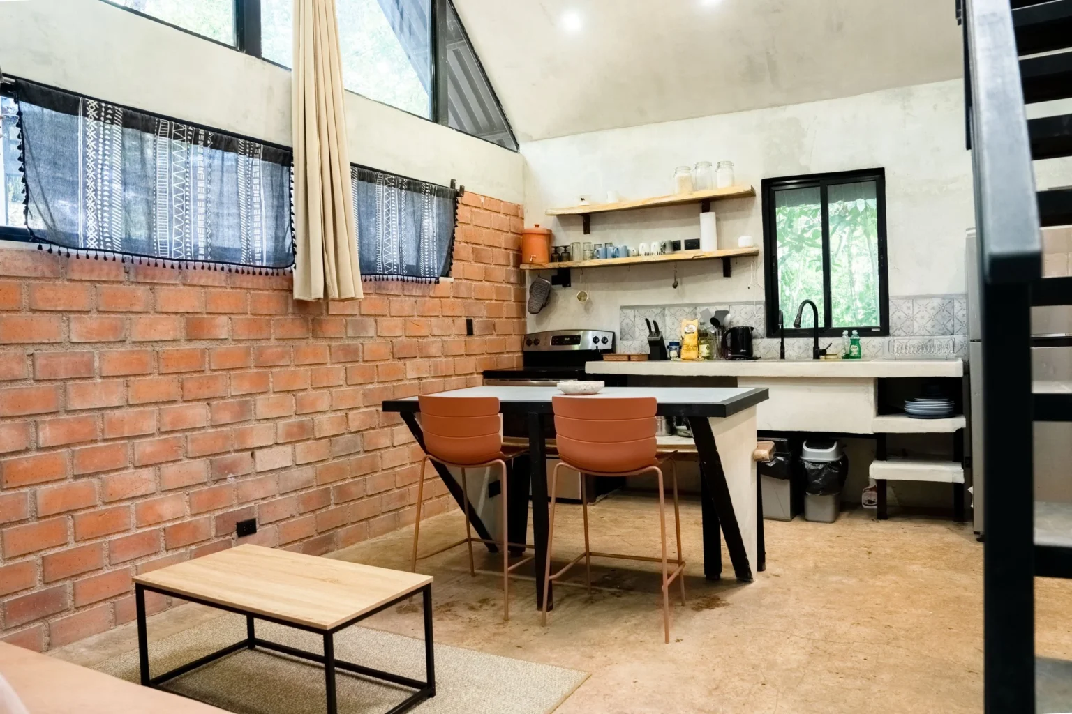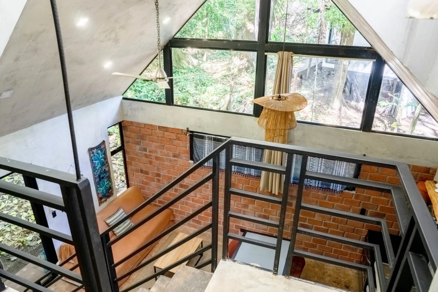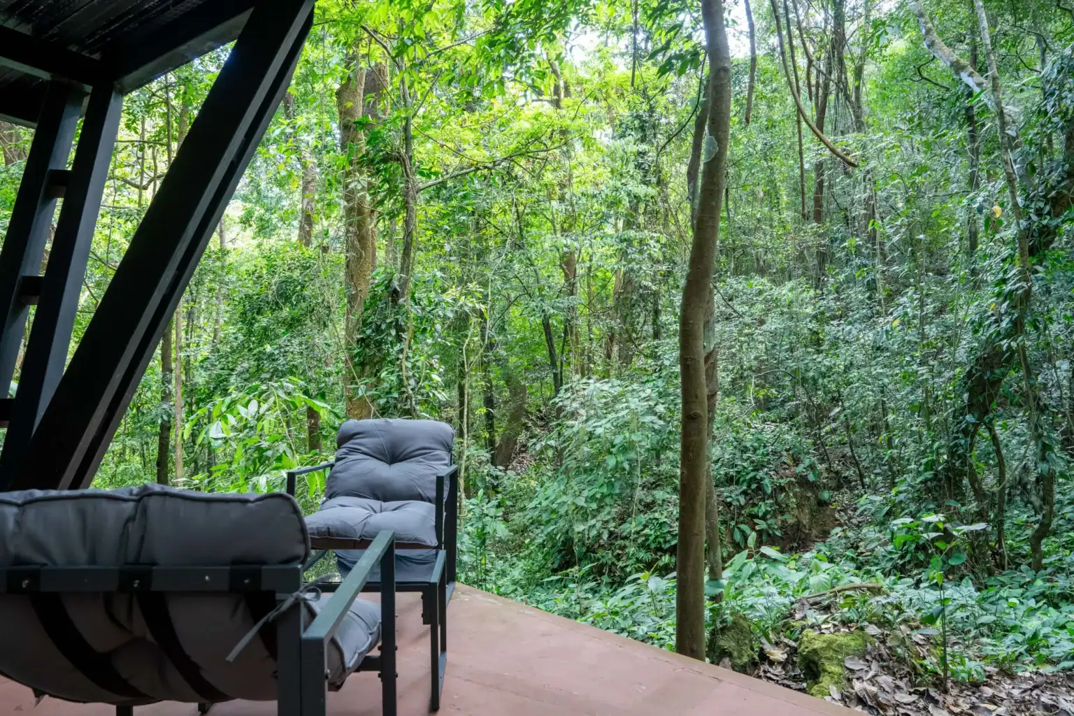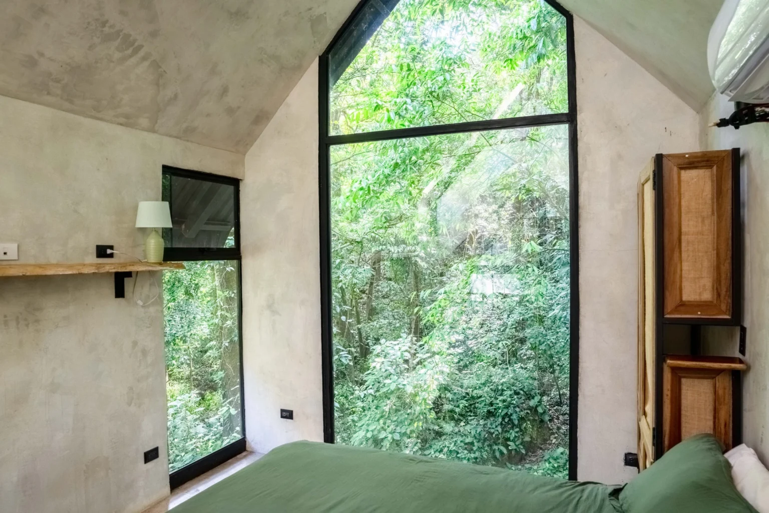 Casita La Raíz is a small A-frame–style jungle tiny home in Alegría Village, San Mateo, Costa Rica. It’s set up for 2 guests with 1 bed and 1 bathroom, with a sleeping loft and floor-to-ceiling windows looking out into the rainforest canopy. It suits nature-loving travelers who want a quiet, immersed jungle stay rather than a “resort” experience.