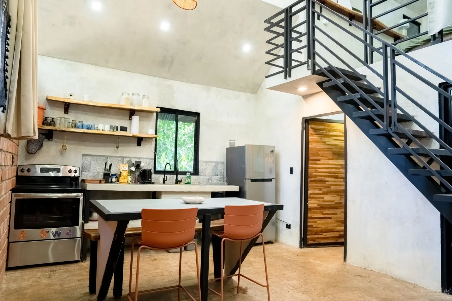 Nature Access: Jungle setting with regular wildlife (the listing mentions monkeys and birds) and a private creek accessed by a short trail; the listing also highlights being about 50 minutes by car from Carara National Park.